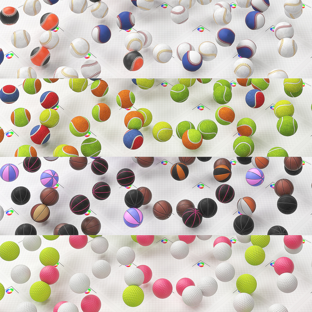 • 25 realistic Sports Balls Shaders designed for high Quality-Speed render.